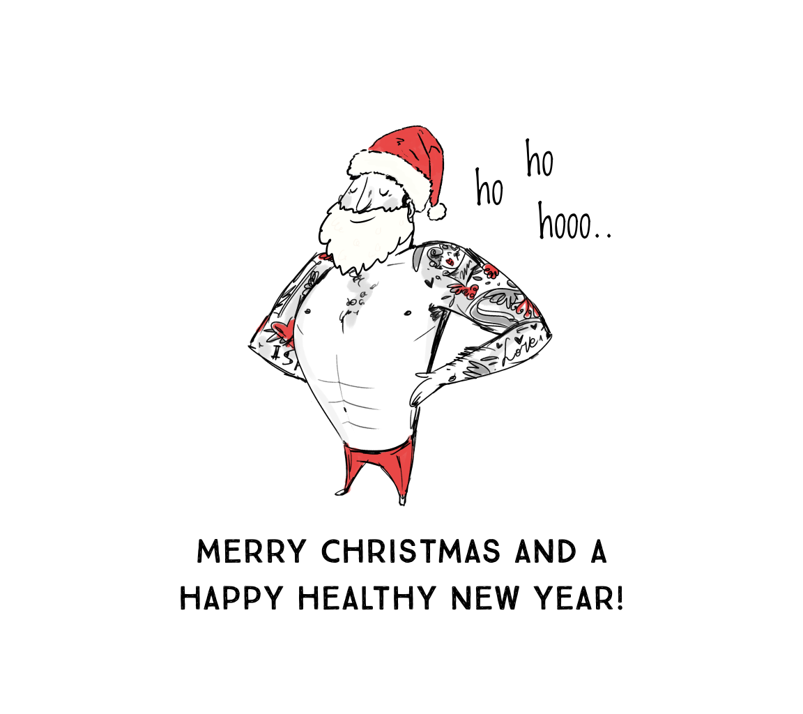 Zakelijke kerstkaart met een illustratie van een stoere kerstman