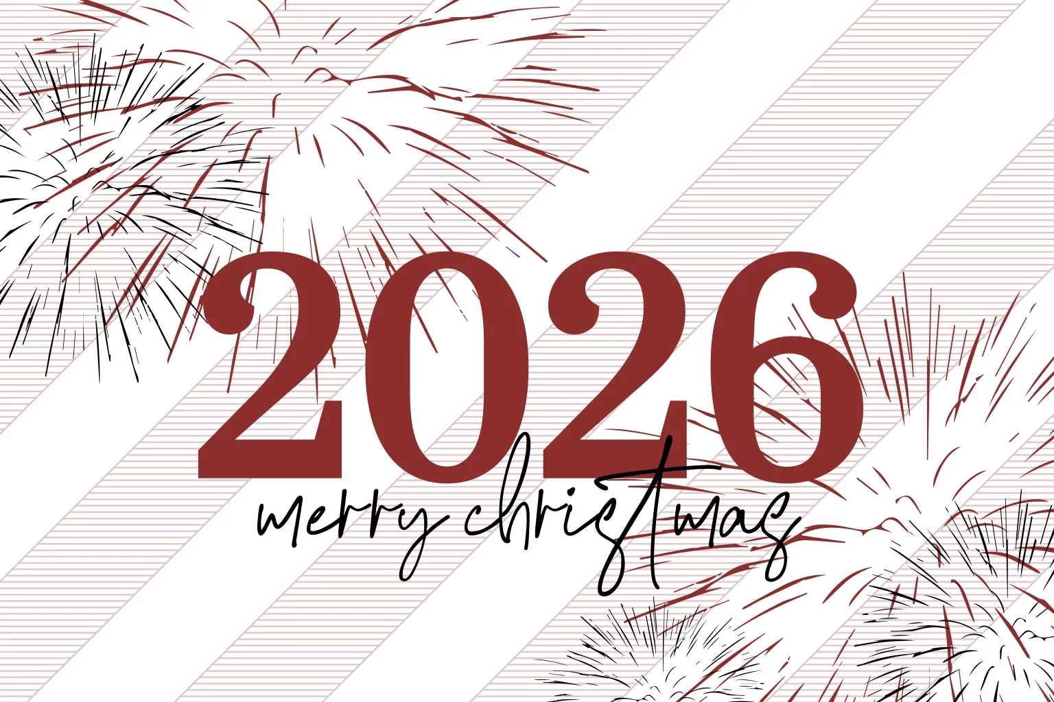 Een vrolijke nieuwjaarskaart om je collega's de beste wensen voor het nieuwe jaar mee te wensen. De kaart heeft vuurwerk en vrolijke lijnen op de achtergrond. Als tekst staat er het nieuwe jaartal en een fijne kerst. Pas de kaart volledig aan naar je eigen wensen in onze online editor.