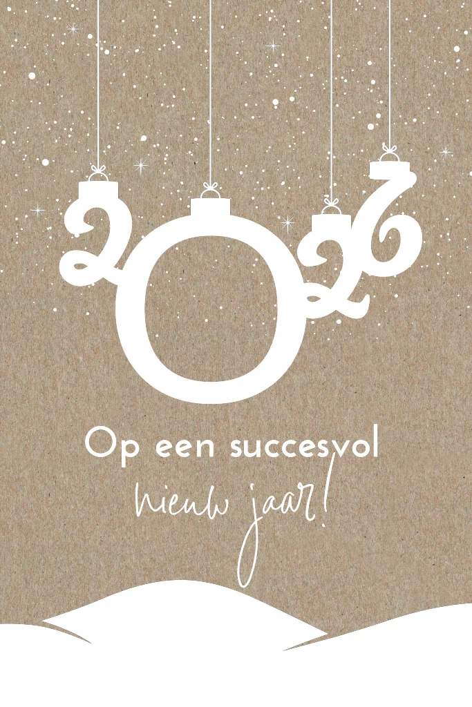 Wens je collega's een fijne jaarwisseling met deze nieuwjaarskaart. De kaart is van kraft-karton en heeft een duurzame uitstraling. Op de kaart staat een nieuwjaarswens met het jaartaal in slingers. Pas de kaart volledig jaar je eigen wensen aan in onze online editor en voeg zo ook het logo van je bedrijf toe.