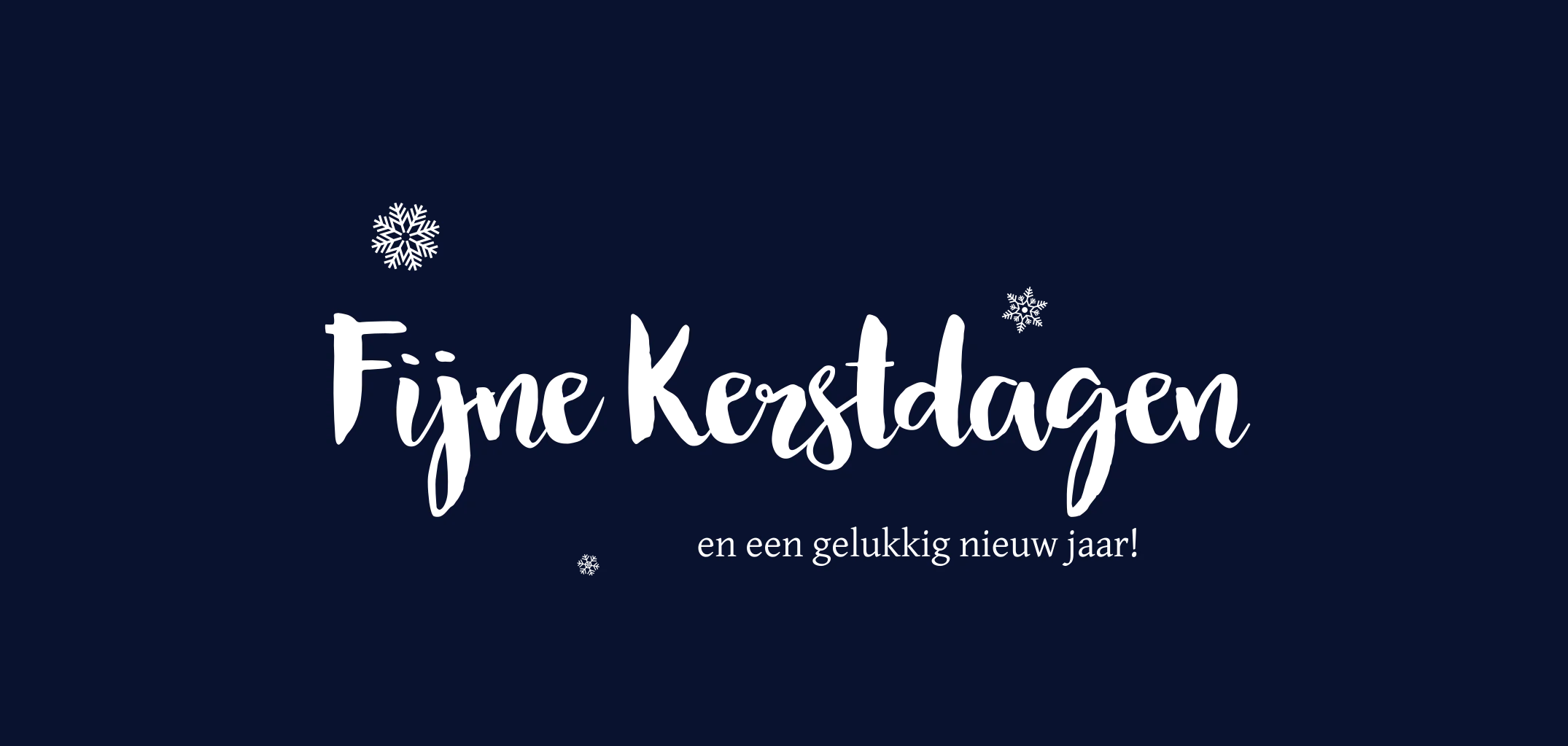 Stijlvolle kerstkaart met sneeuwkristallen en "Fijne Kerstdagen" in goudfolie op een donkerblauwe achtergrond. Echt een chique kleurencombinatie!
