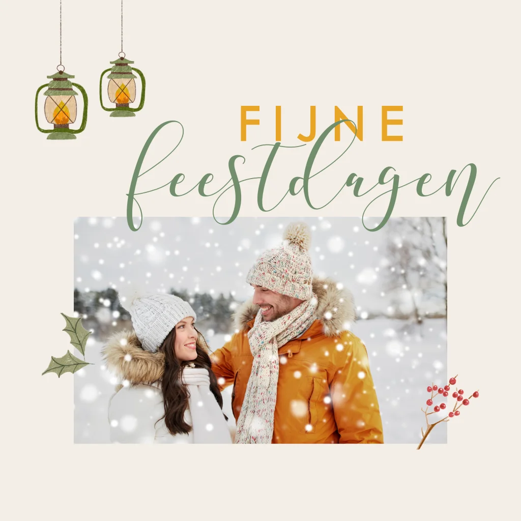 Kerstkaart fijne feestdagen met eigen foto die je kan invullen in de online editor. Wens je familie een warme kerstgroet met deze vrolijke kerstkaart