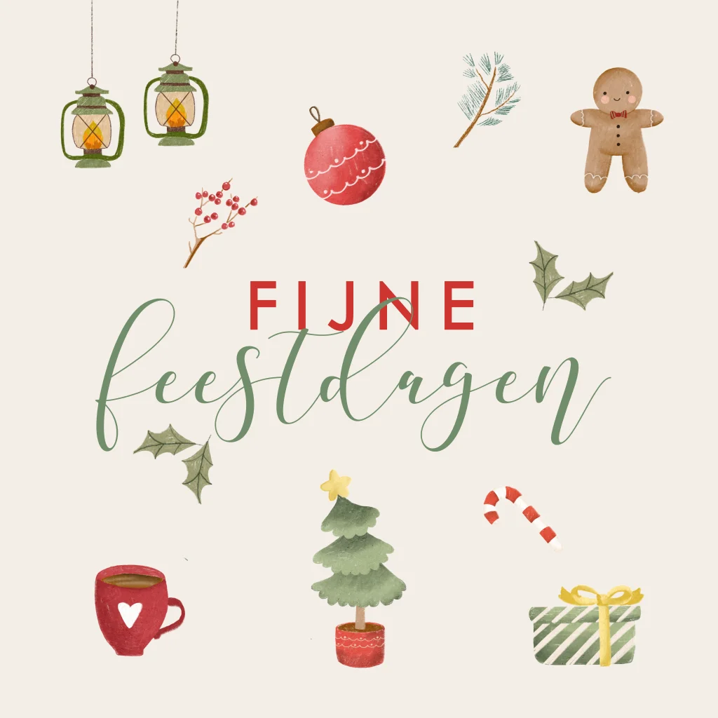 Kerstkaart voor een fijne feestdagen met leuke kerst items