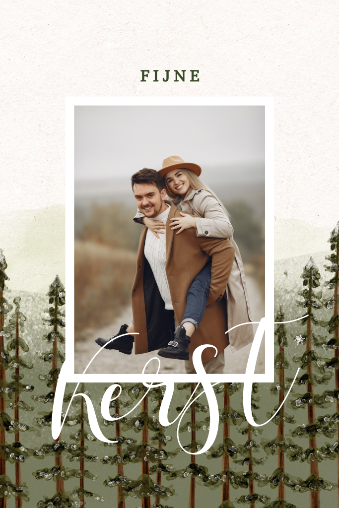 Kerstkaart met foto, bomen en details van goudfolie