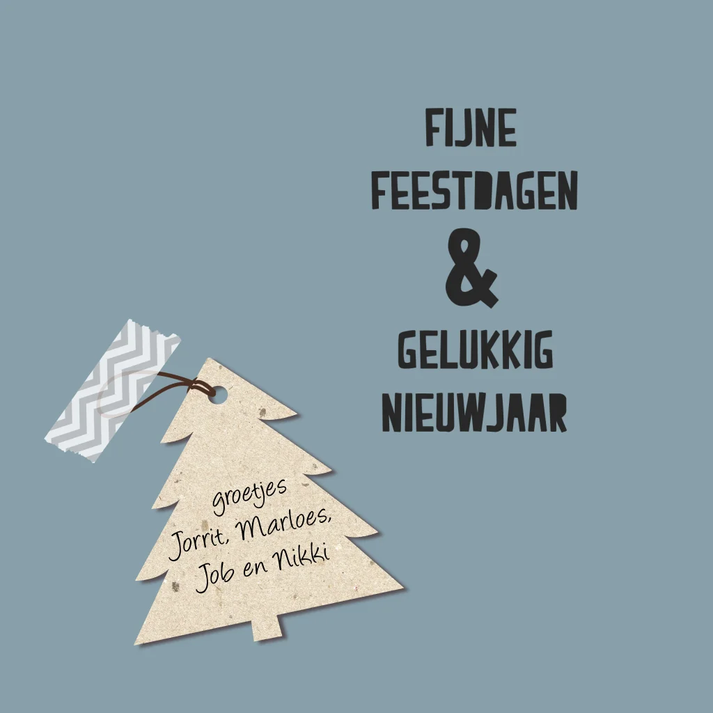 Originele kerstkaart met hout en kerstboom label