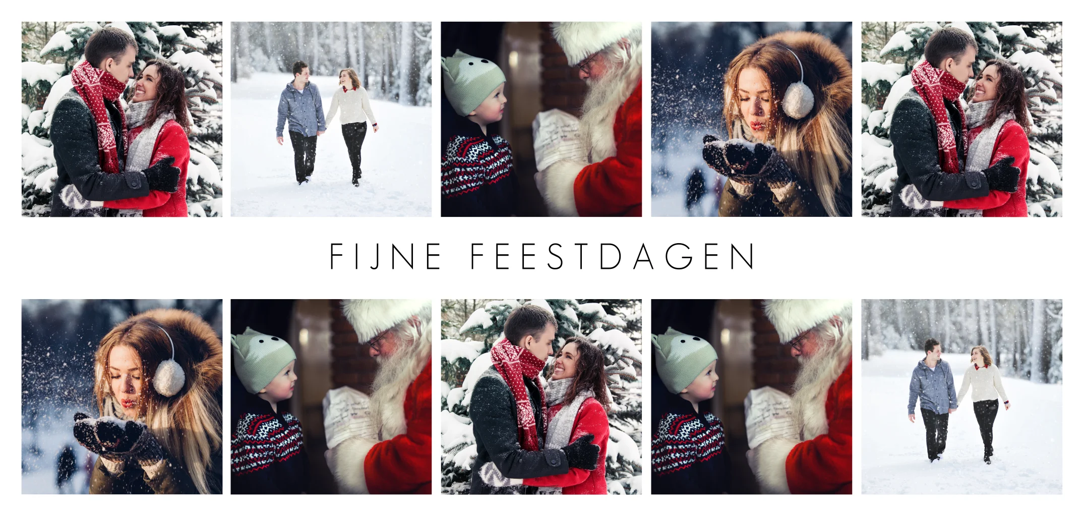 Moderne kerstkaart, door het panoramamodel is er ruimte voor heel veel foto's en ook op de achterzijde kun je nog een eigen foto kwijt, daar staat ook het silhouet van een kerstboom. Upload je eigen foto's, verander de achtergrondkleur en schrijf je eigen kerstwens om deze kerstkaart af te maken!