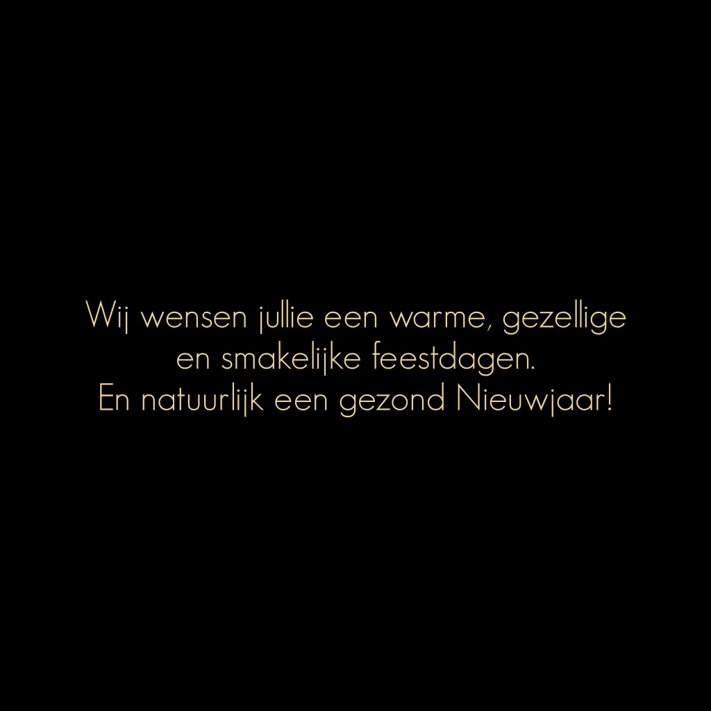Een sfeervolle kerstkaart: in de gouden glittercirkel hangen kerstballen op een nachtblauwe achtergrond. De sterren fonkelen je tegemoet, de kerstballen komen terug op de donkere binnen- en achterkant van de kaart.