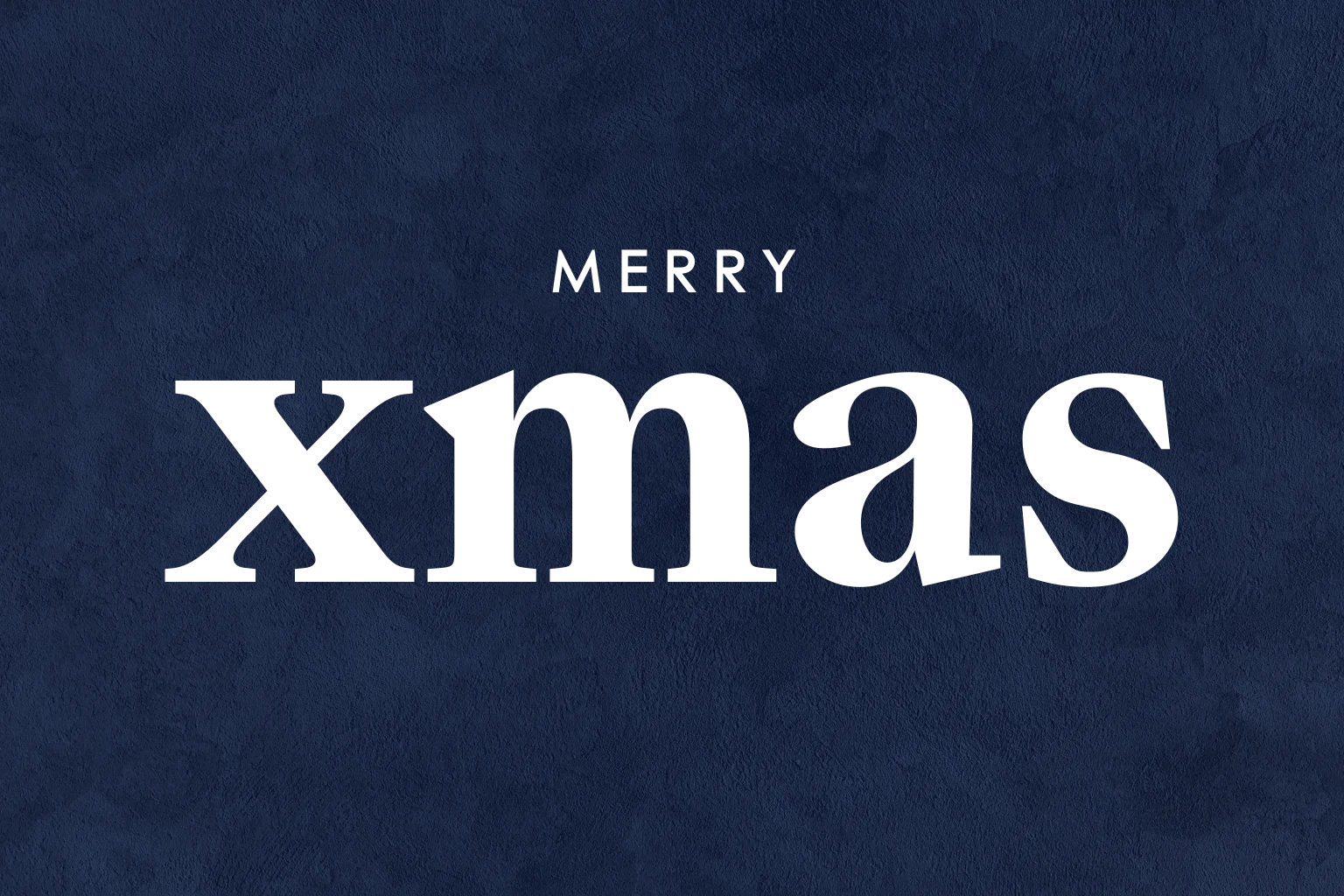 Een eenvoudig maar stijlvolle kerstkaart in donkerblauwe velvet-look. De tekst op de voorkant is van goudfolie en staat in stoere, hippe typografie.