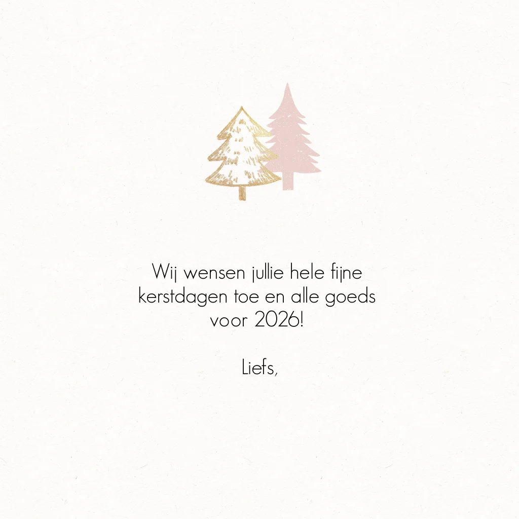 Lieve kerstkaart met roze en goude kerstbomen