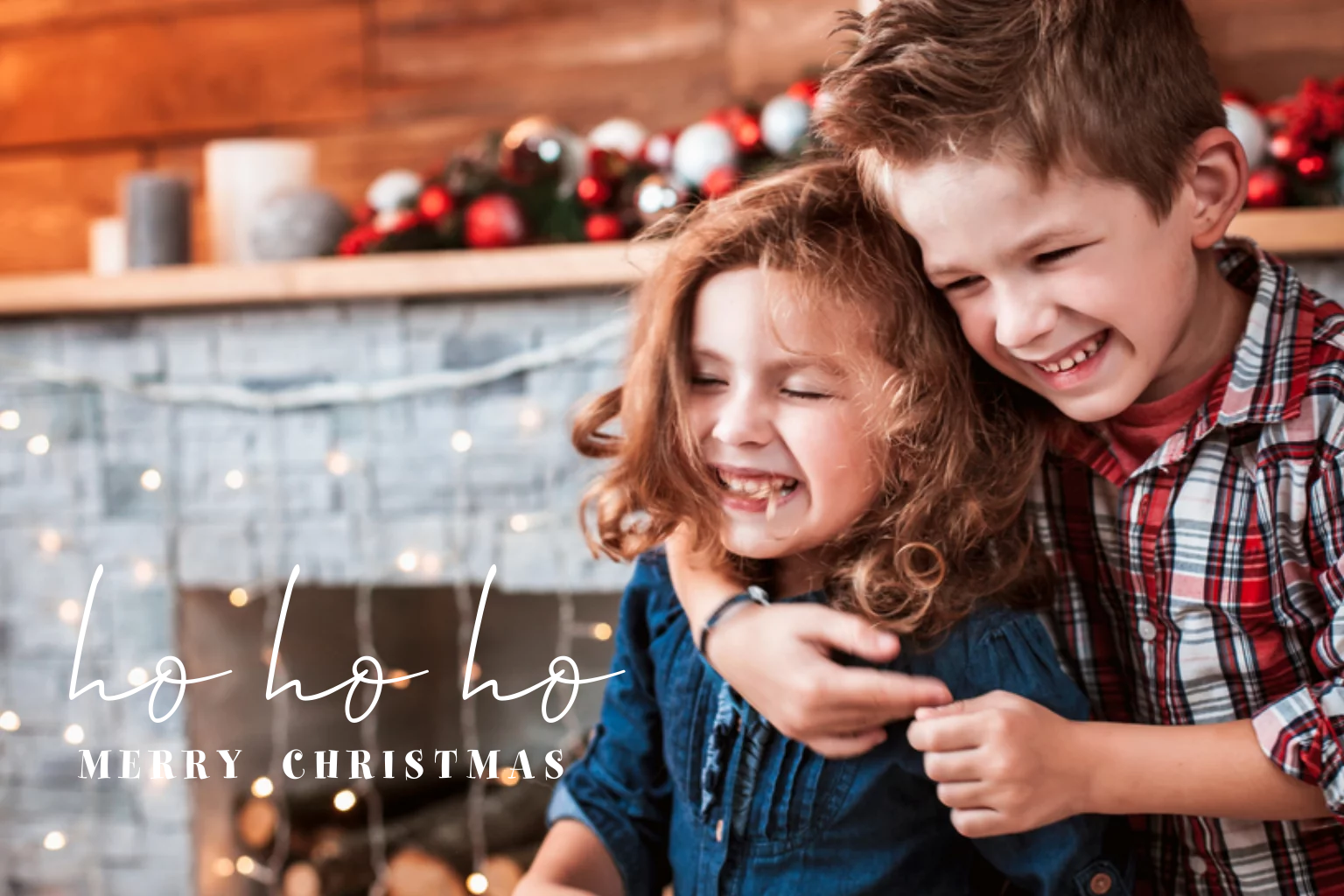 Een moderne kerstkaart met op de voorkant een foto. De kaart heeft ronde hoeken en de tekst is in goudfolie. Pas het ontwerp eenvoudig aan naar eigen wens in de online editor.