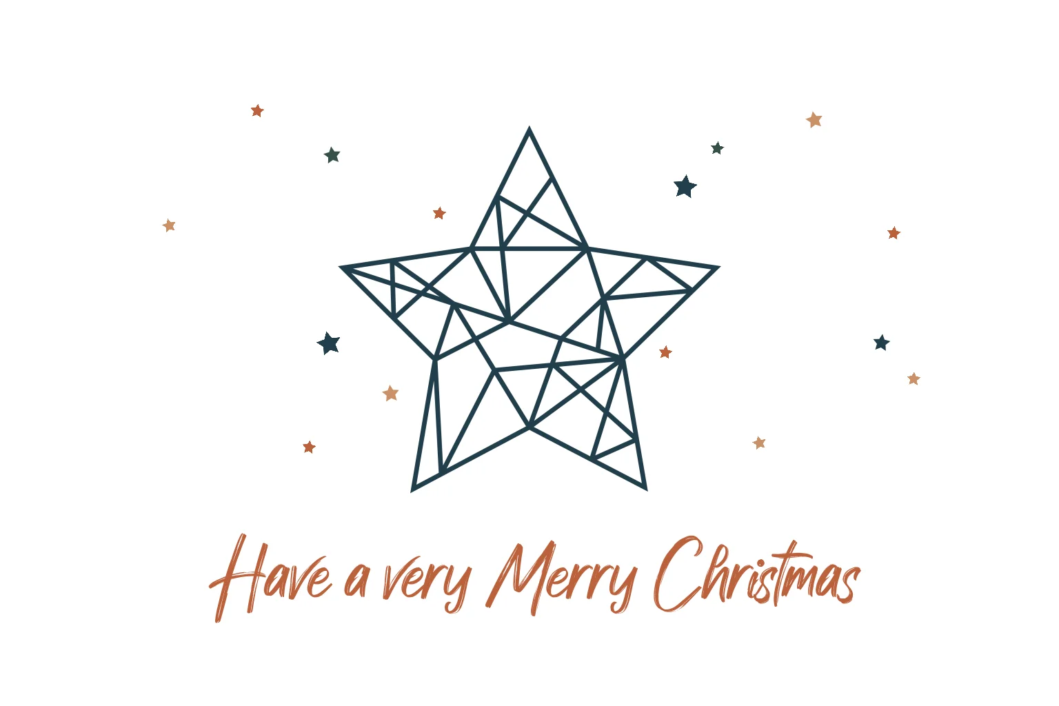 Een moderne kerstkaart met een geometrische ster. De kaart heeft ronde hoeken.