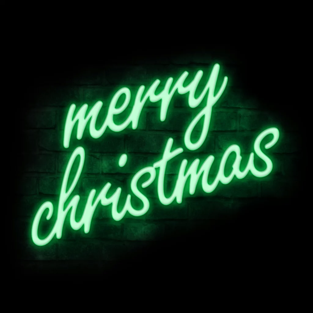 Originele kerstkaart met Merry Christmas in Neon verlichting