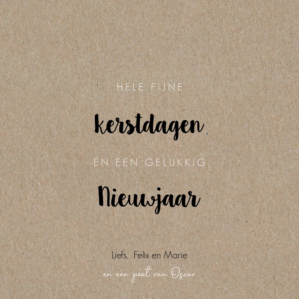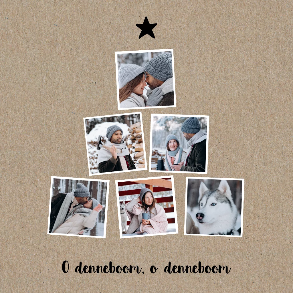 Maak een originele kerstkaart op deze kaart in kraft-look. Op de voorkant kun je maar liefst zes foto's plaatsen in de vorm van een kerstboom, leuke verrassing voor familie en vrienden!