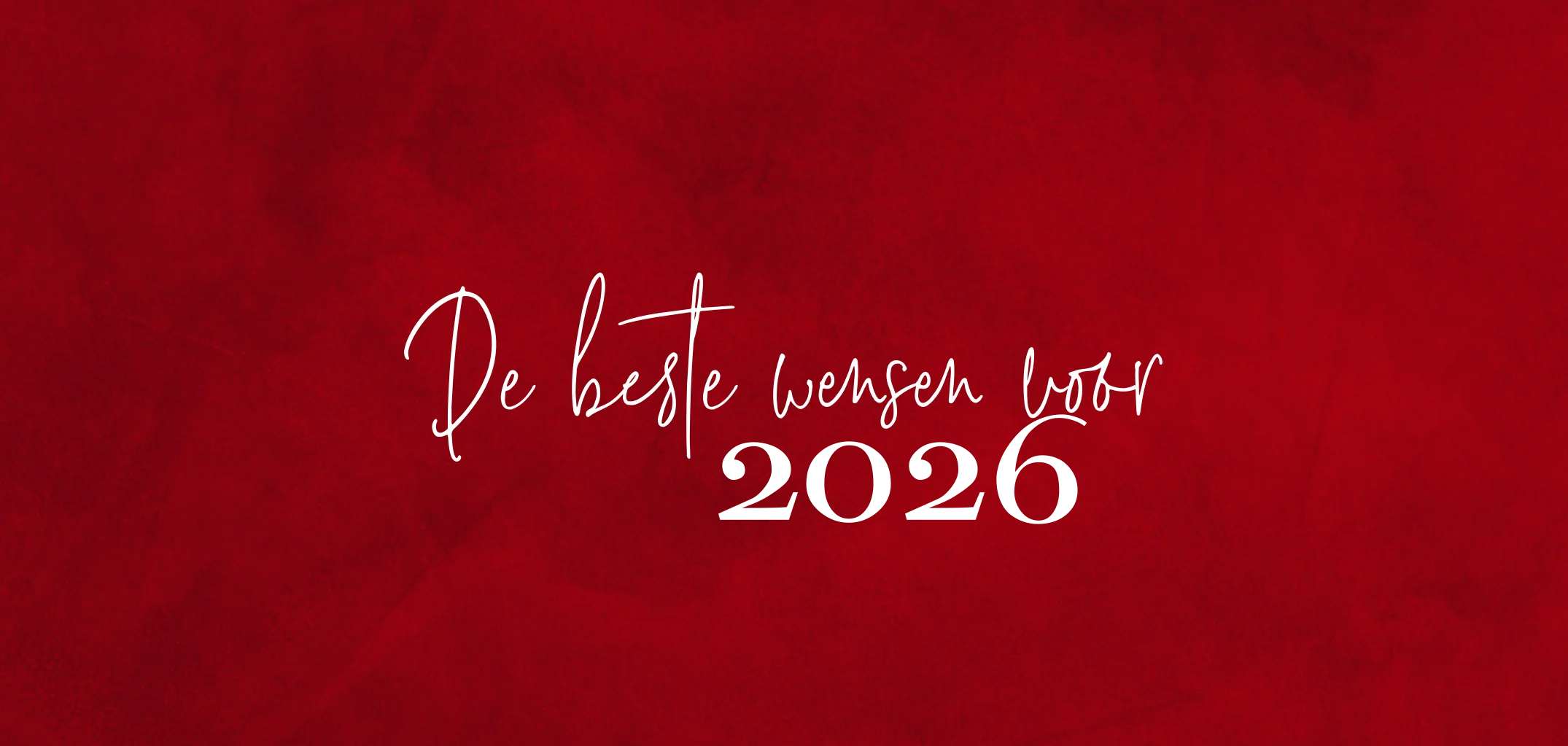 Zakelijke of persoonlijke nieuwjaarskaart in donkerrood model panorama. Stijlvolle kaart met typografie in goudfolie, dat de kaart een luxe uitstraling geeft.