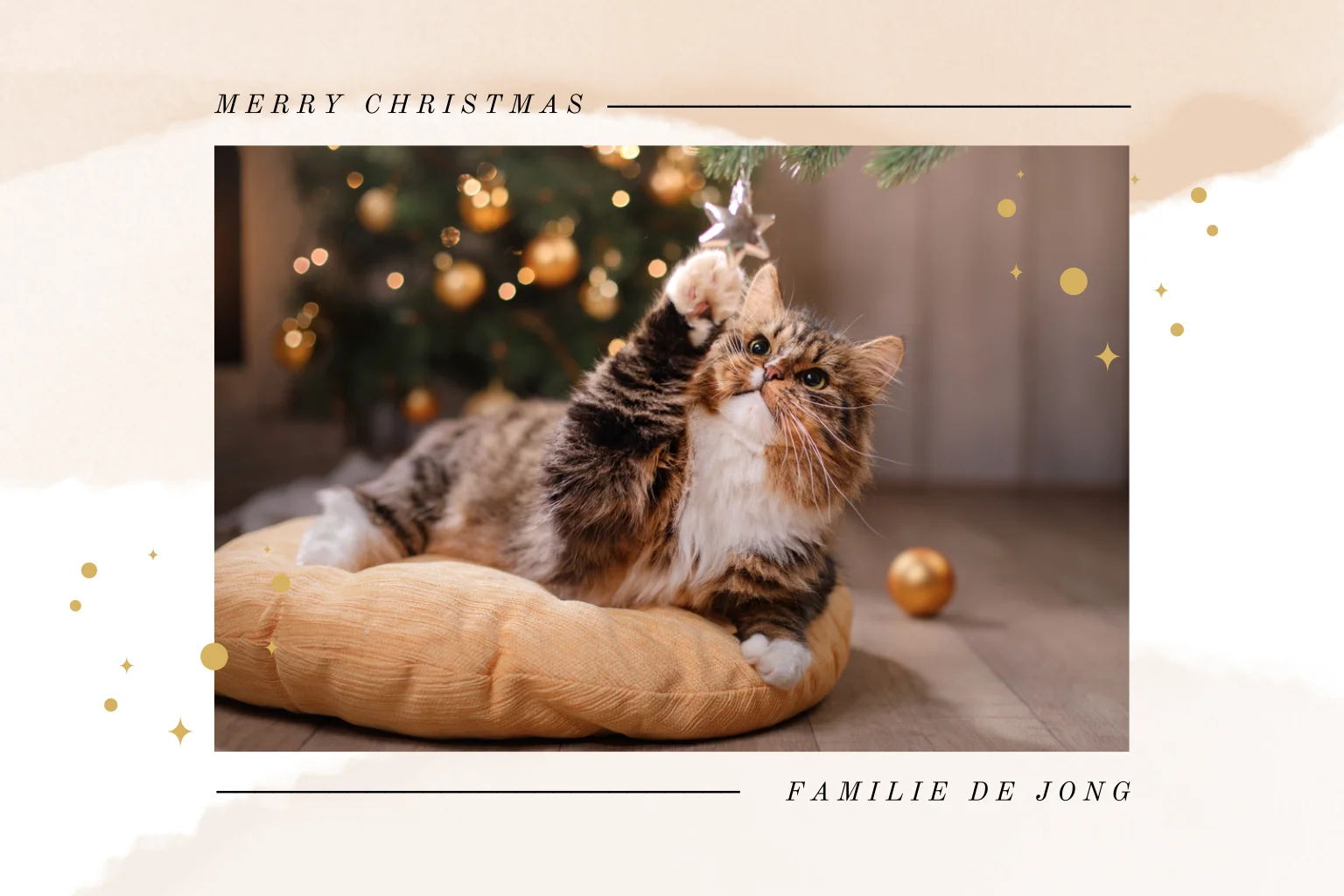 Een mooie en hippe kerstkaart met ruimte voor eigen foto op de voorkant. De kaart heeft ronde hoeken en een watercolor achtergrond in naturel tinten.