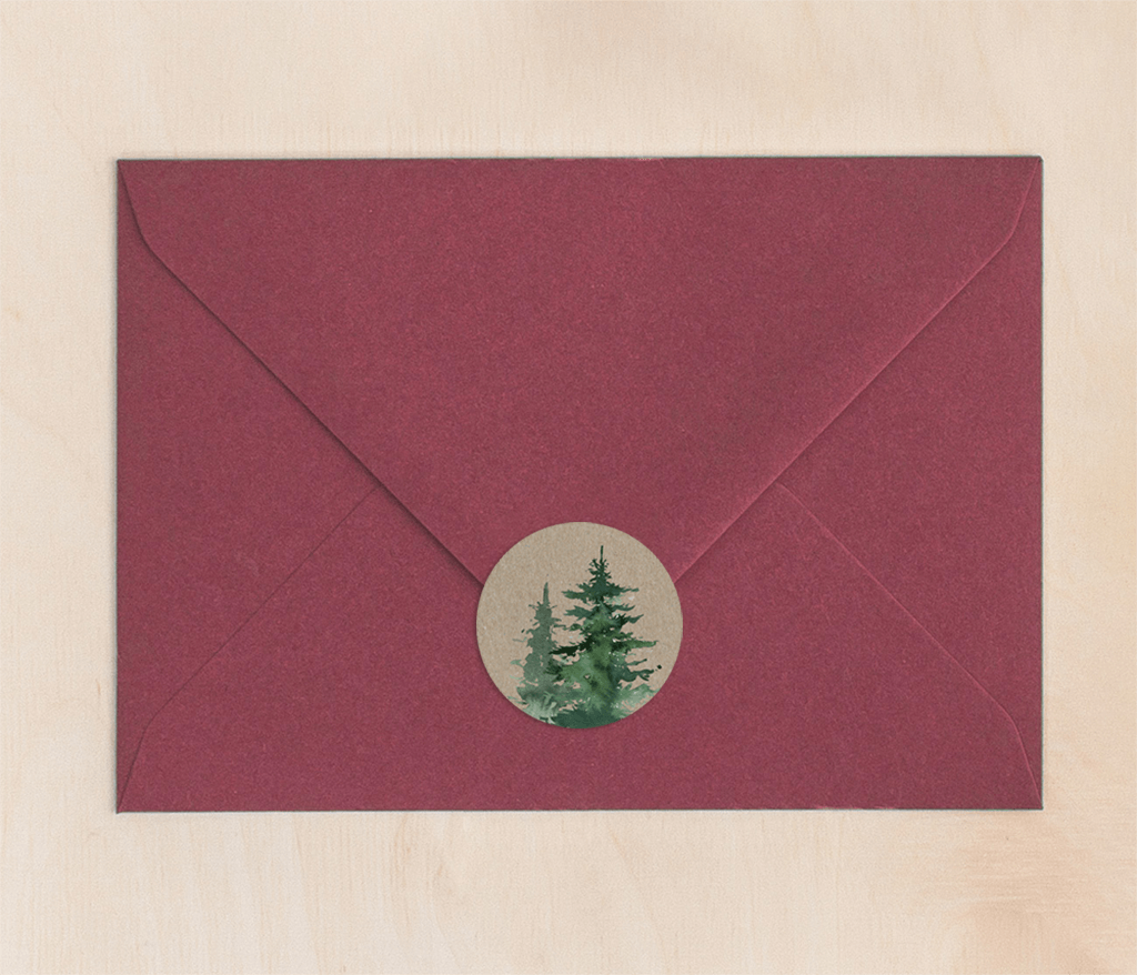 Leuke ronde kerststickers in kraftlook met dennenbomen van groene waterverf. Per vel 20 stuks, de afmeting is Ø 44 MM.