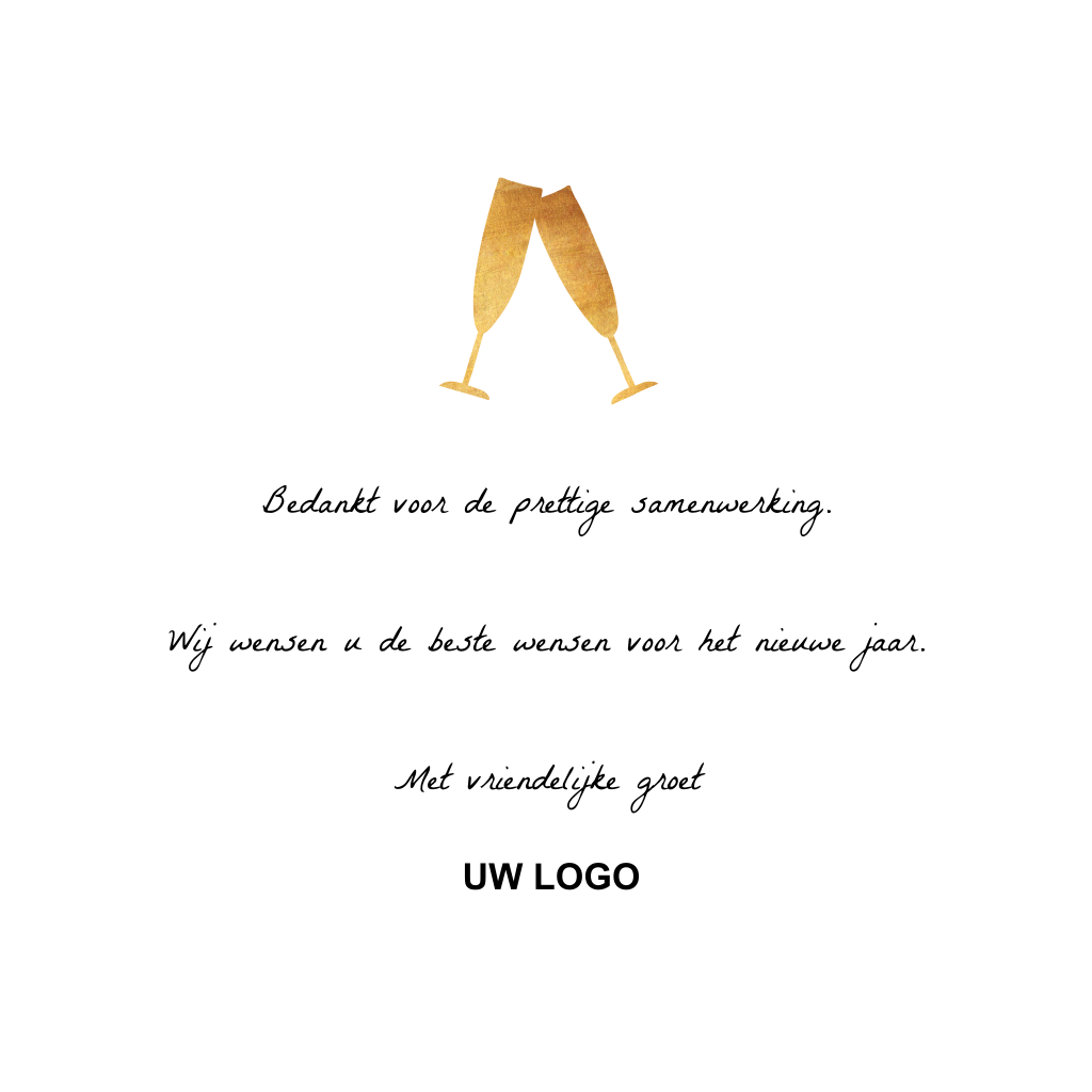 Verstuur deze chique kerstkaart om je zakenpartners te bedanken voor de prettige samenwerking. Met hippe typografie in goudlook is deze kaart echt trendy! In de online editor maak je de kaart af met eigen tekst en eventueel jullie bedrijfslogo aan de binnenkant.