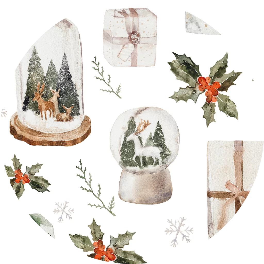 Vrolijke kerststicker met leuke kerst elementjes. Vel van 25 stickers