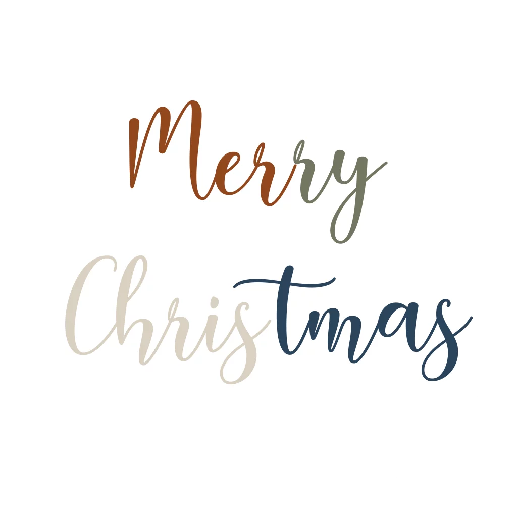 Witte sticker met de tekst Merry Christmas in kerst achtige kleuren
