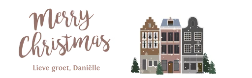 WIjnkist met vrolijke kersthuisjes en kerstwens