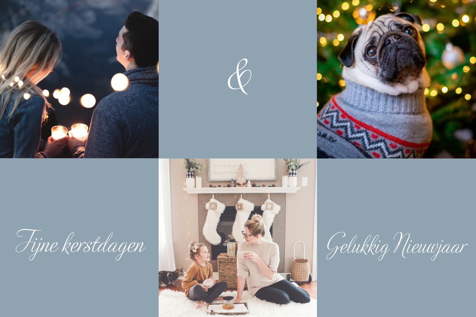 Dit leuke kerstkaartje kun je personaliseren door er drie mooie foto's op te zetten. De typografie en de kleuren kun je geheel naar eigen wens aanpassen in de online editor.