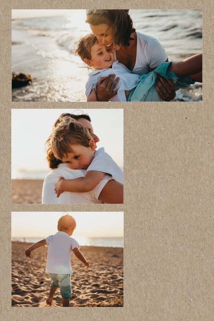 Kerstkaart staand model enkel. Moderne kaart van kraftpapier met ruimte voor eigen foto's en leuke typografie.