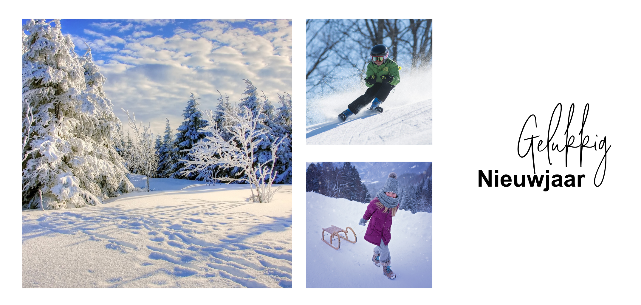 Een panorama zelf maken fotokaart voor kerst. Deze kaart heeft ruimte voor verschillende foto's. Kies zelf een leuk lettertype in de online editor.