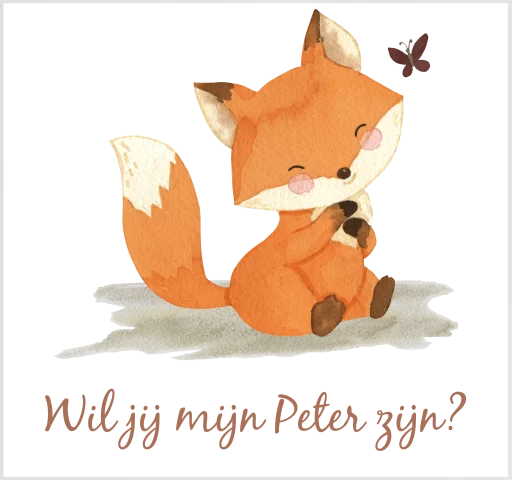 Een witte mok met zwart oor met een lief zittend vosje en een vlinder.
