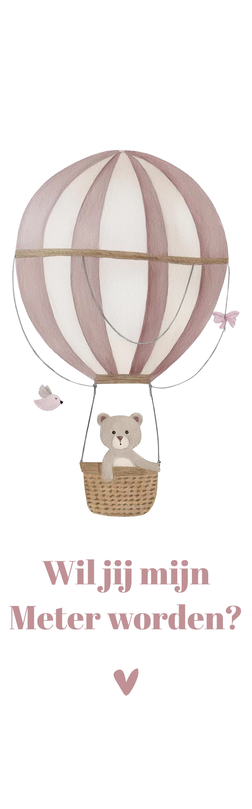 Houten wijnkist om je meter of peter mee te vragen. De kist heeft een schattig beertje die in een luchtballon zit