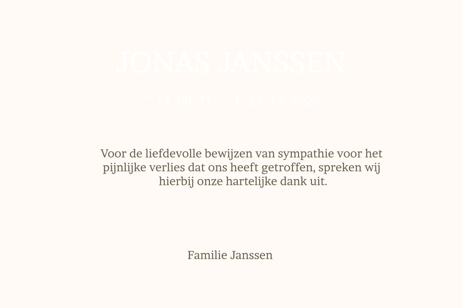 Een minimalistische bedankkaart met letters in roségoudfolie. Aan de binnenzijde is ruimte voor een persoonlijke tekst. In onze online editor kunnen kleuren en lettertypes naar wens worden aangepast.