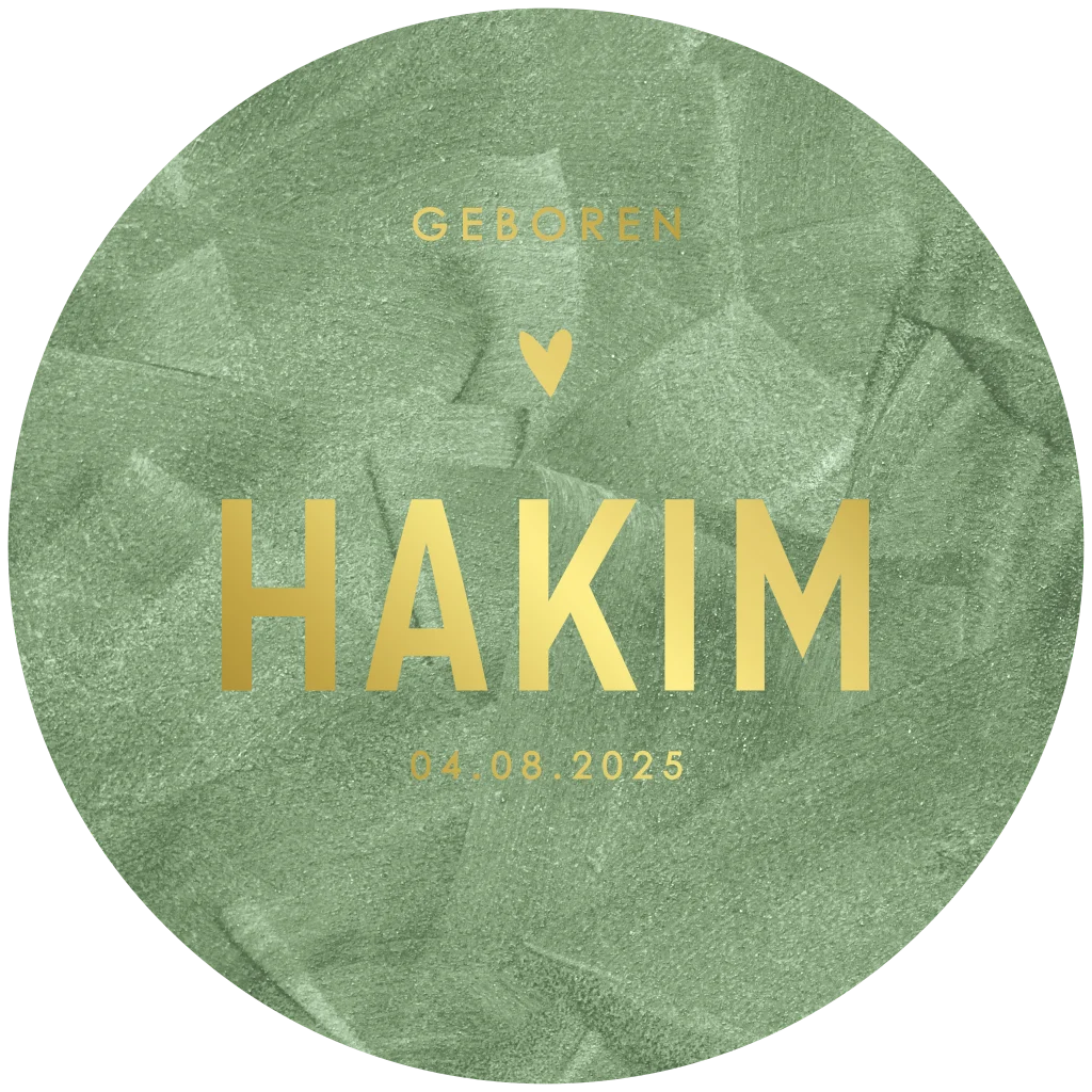 Een originele rond geboortekaartje. Het kaartje heeft een groene velvet-look met een hartje en typografie van goudfolie.| Totaalprijs: 0 |