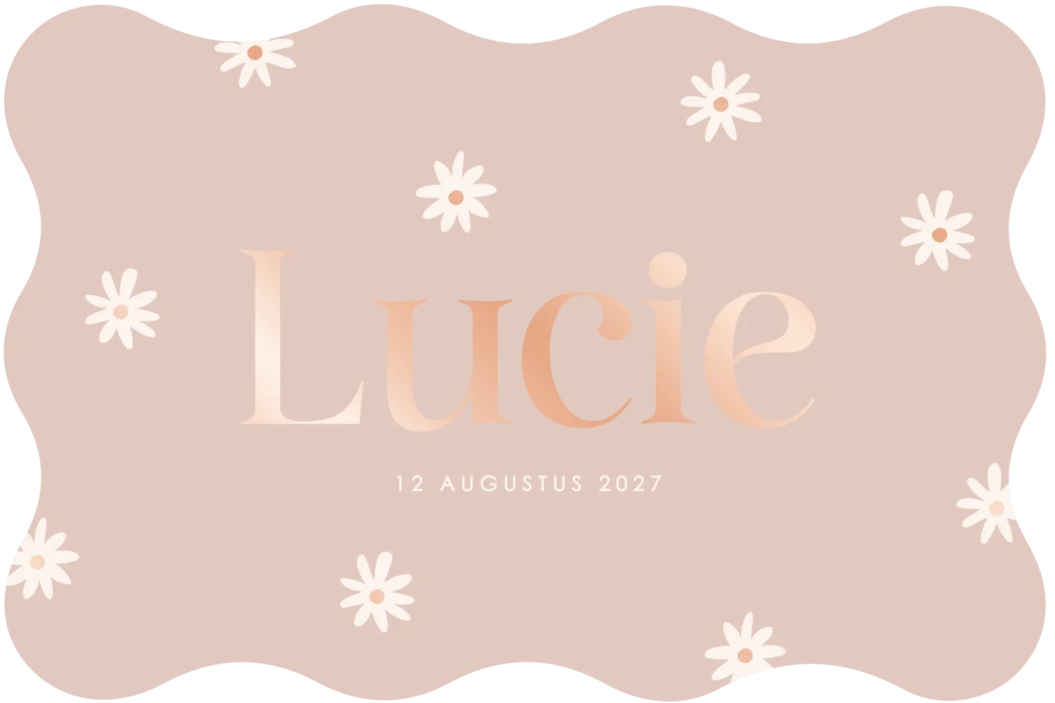 Geboortekaartje met madeliefjes en roségoudfolie