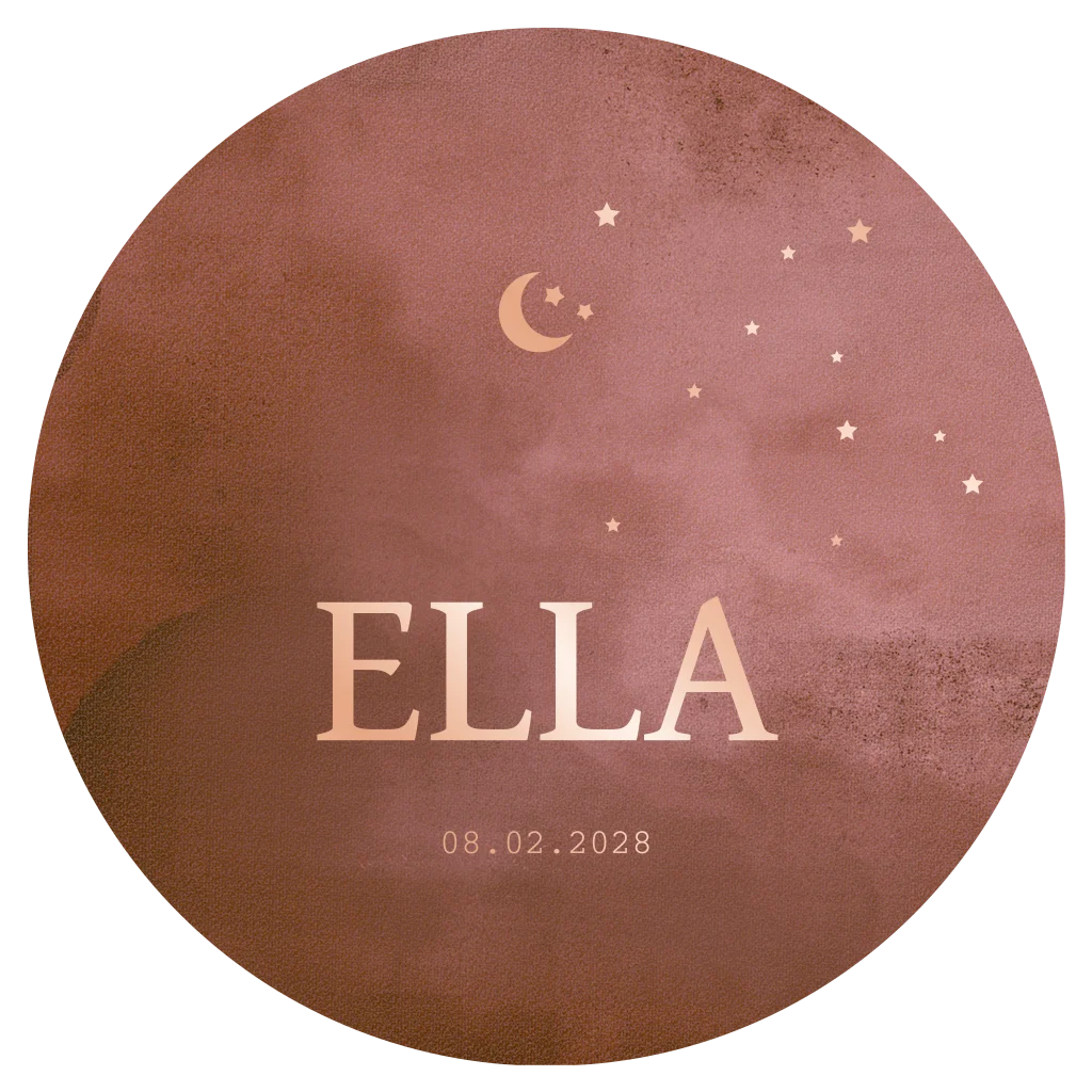 Rond geboortekaartje meisje maan sterren roségoudfolie