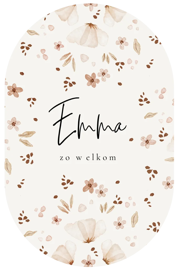 Stijlvol ovaal geboortekaartje met romantische bloemen
