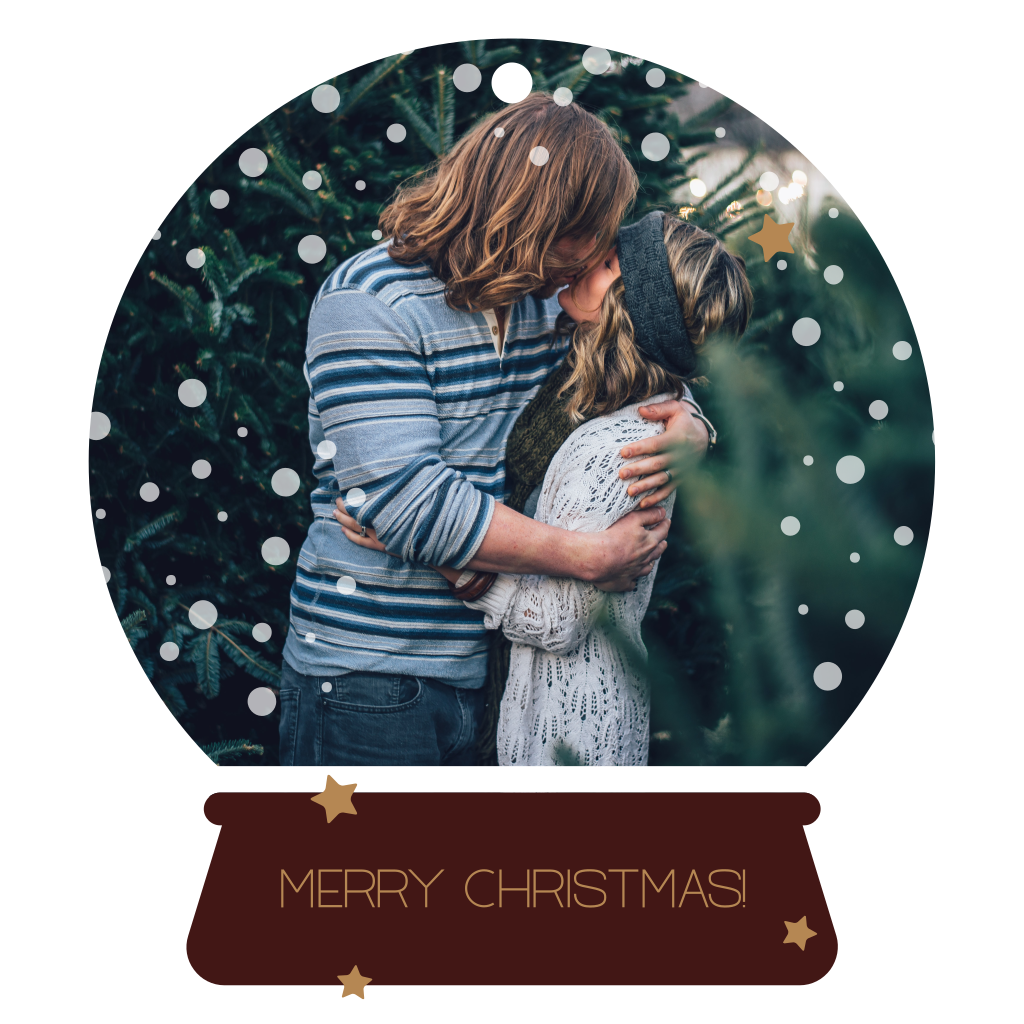 Originele kerstkaart in de vorm van een sneeuwbol met eigen foto