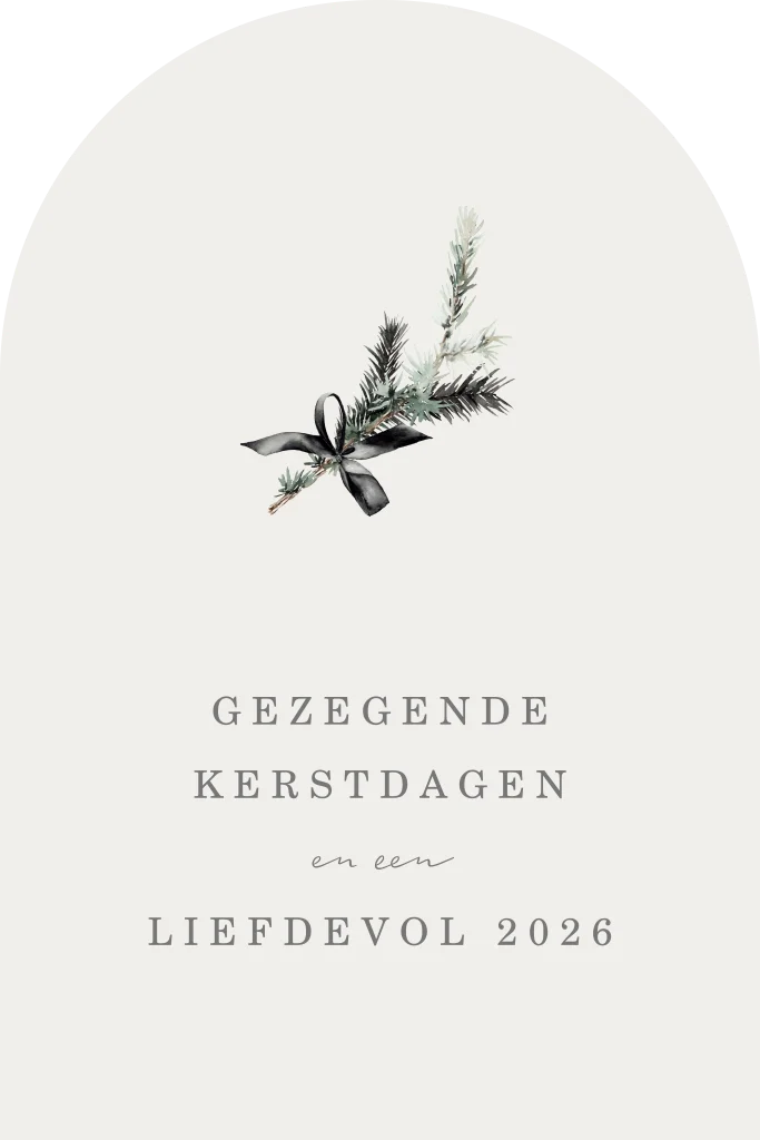 Een prachtige kerstkaart met een christelijke boodschap voorop. Boven de tekst staat een kersttak afgebeeld met een strikje eromheen.