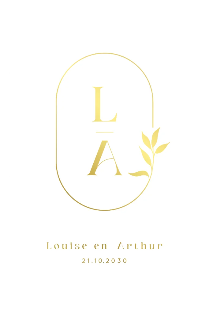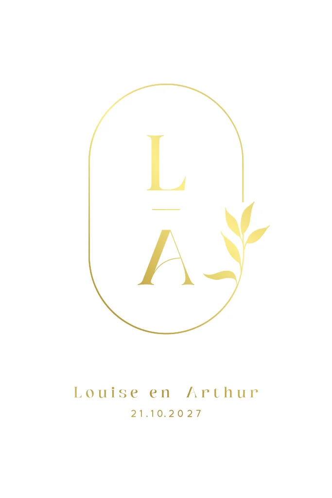 Chique trouwkaart in originele vorm met initialen in goudfolie