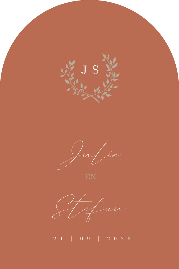 Minimalistische trouwkaart in boogvorm in roestkleur.