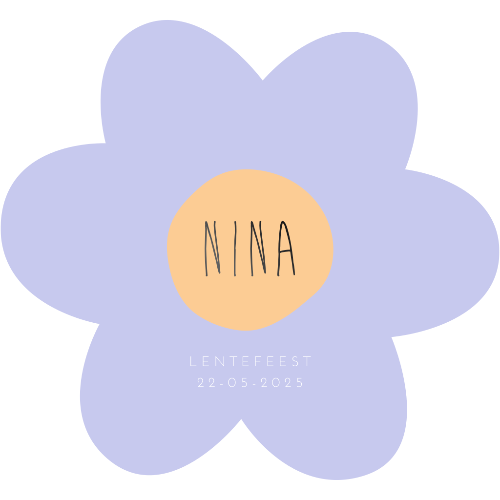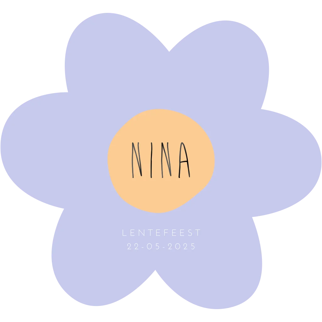 Ben je op zoek naar een originele communiekaart? Dan is dit het kaartje voor jou! Met deze unieke bloemvorm en de zwarte foliedruk heb je gegarandeerd een unieke uitnodiging. De achterkant is lichtgeel met lila tekst.