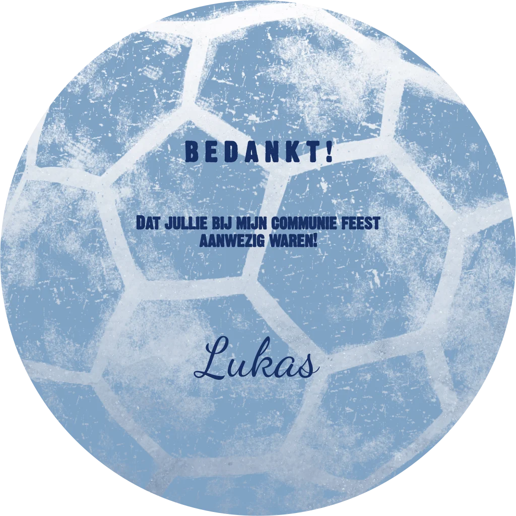 Ronde bedankkaart met een voetbal print bij communie
