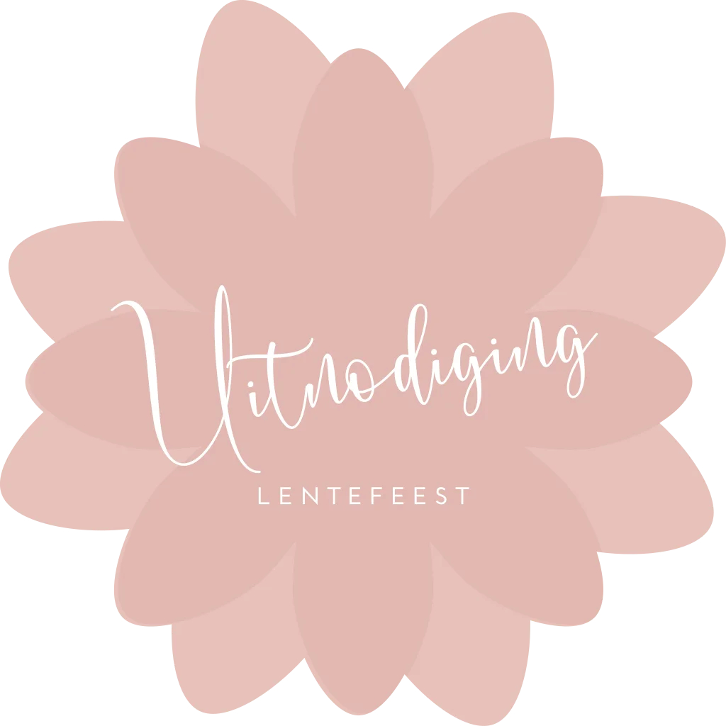 Lentefeest uitnodiging voor een meisje in de vorm van een bloem. De kleur en de tekst kunnen eenvoudig in de editor worden aangepast.