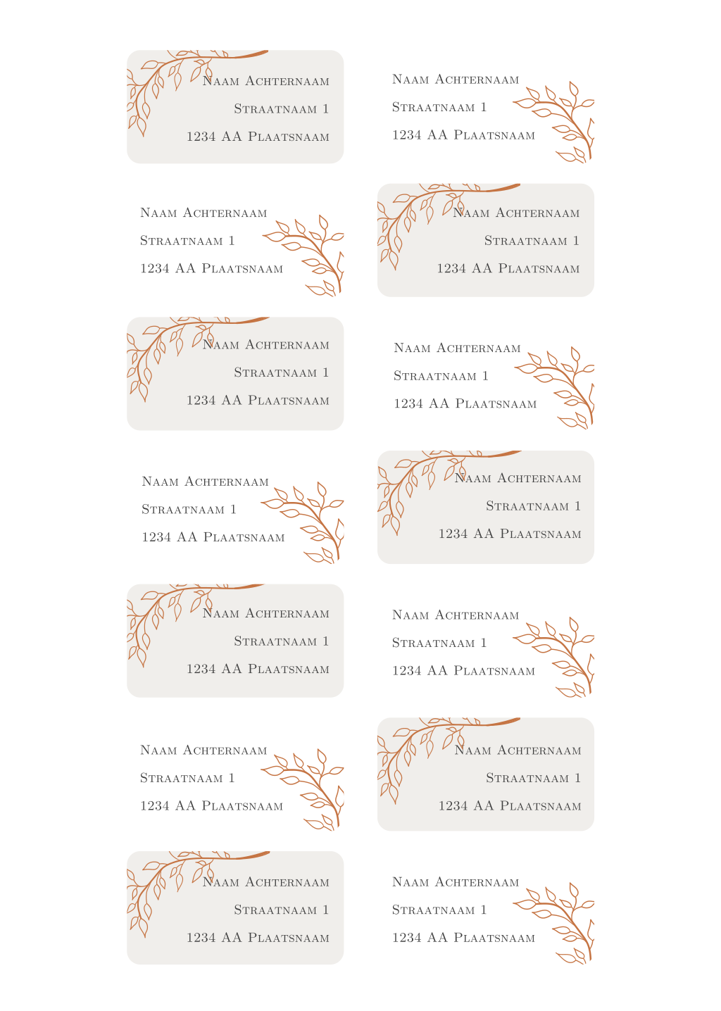 Adresstickers die passen bij de trouwkaart met het takje. In dezelfde stijl bestel je deze stickers met adressen. Deze adresstickers hebben afgeronde hoeken en zijn 97x34mm. Je bestelt ze per 14 stuks op een vel.
