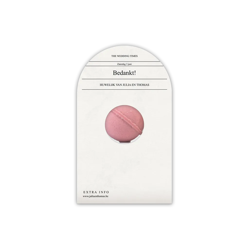 Boogkaartje in krantenstijl voor de trouwbedankjes