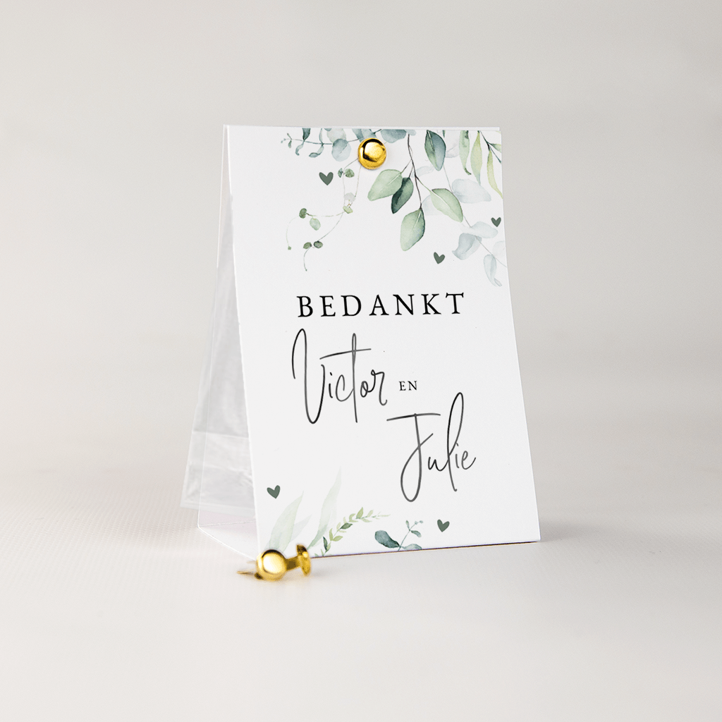 Tentkaartje bedankje met hoogglans en eucalyptusblaadjes van aquarel