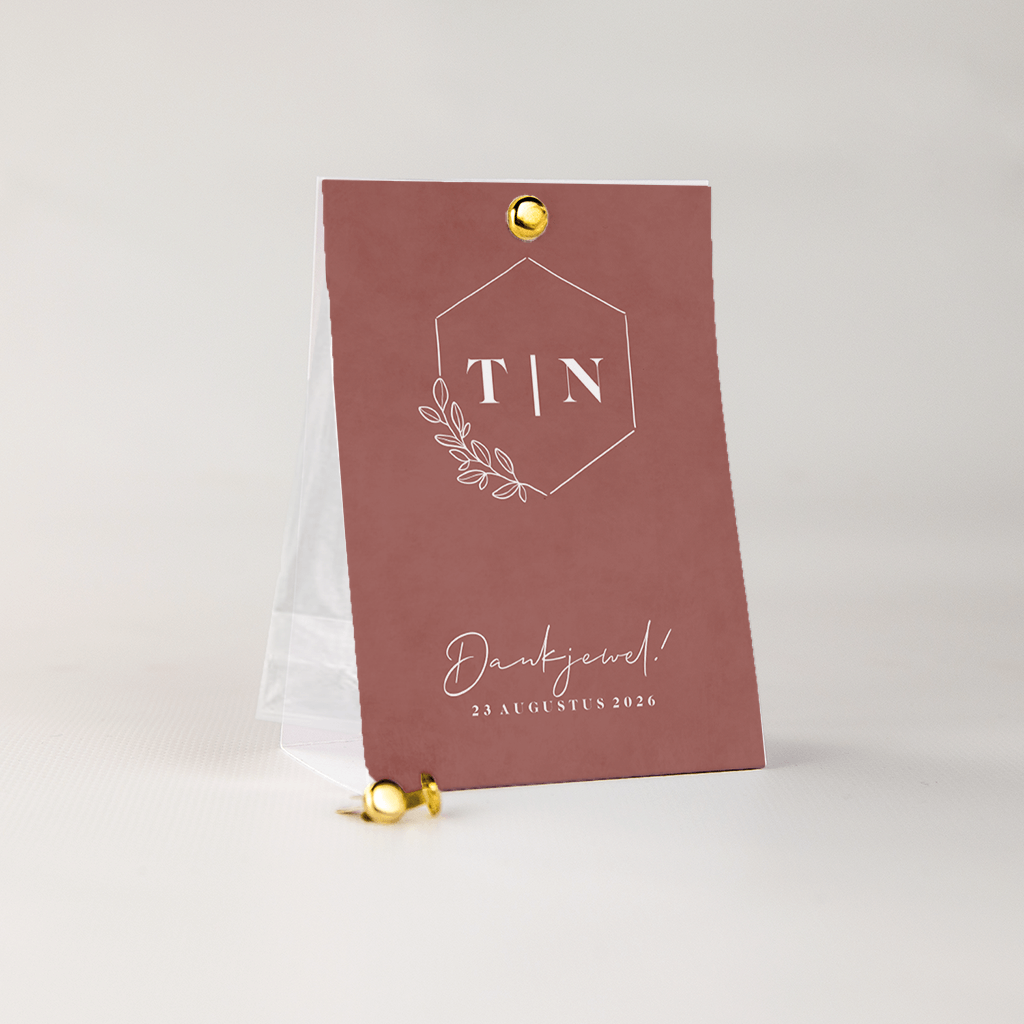 • Voorzien van een gaatje voor de splitpen. Hiermee sluit je het kaartje. De splitpen en het transparant zakje moeten apart besteld worden.