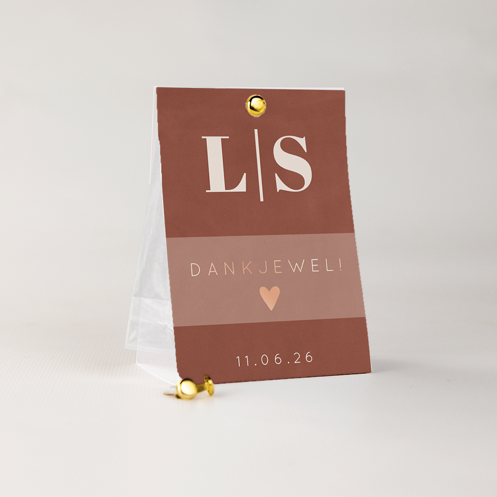 • Voorzien van een gaatje voor de splitpen. Hiermee sluit je het kaartje. De splitpen en het transparant zakje moeten apart besteld worden.
