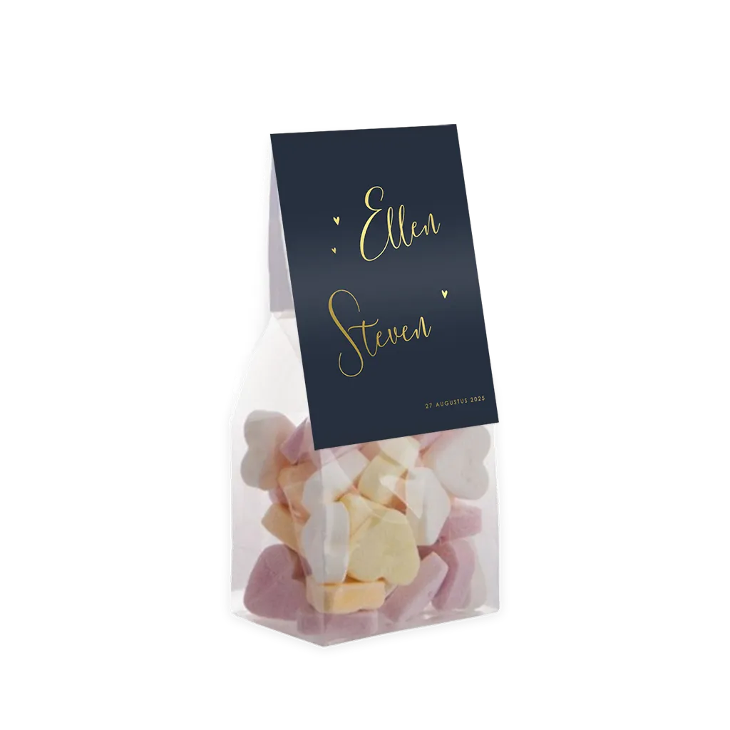Feestelijk vouwkaartje in donkerblauw met goudfolie en hartjes