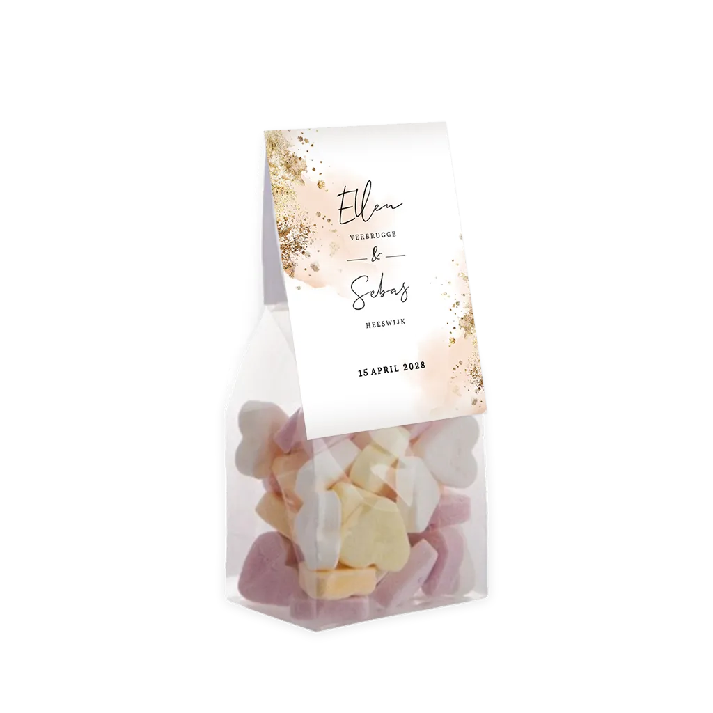 Dit vouwkaartje is in de stijl van de watercolor trouwkaart in roze en goudlook.