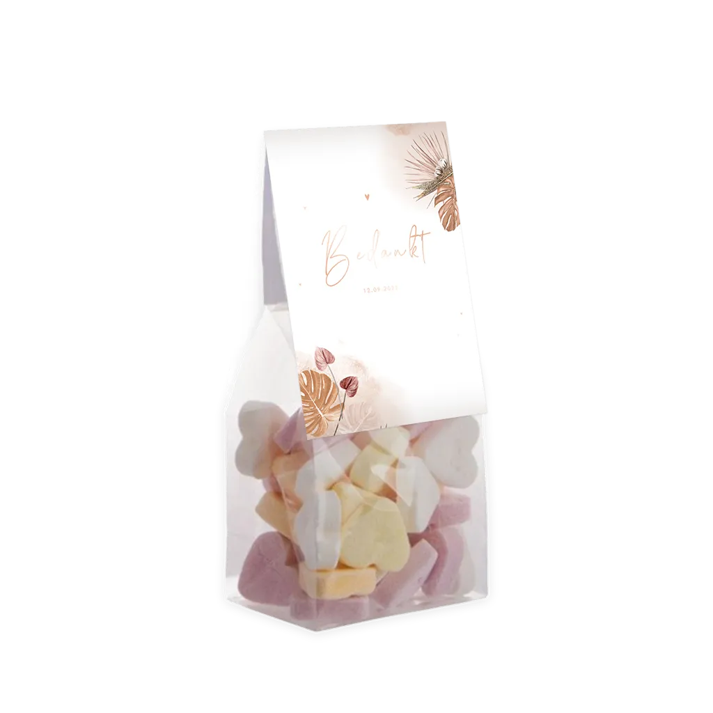 • Te combineren met transparant zakje. Het vouwkaartje kan met nietjes aan het zakje worden bevestigd.