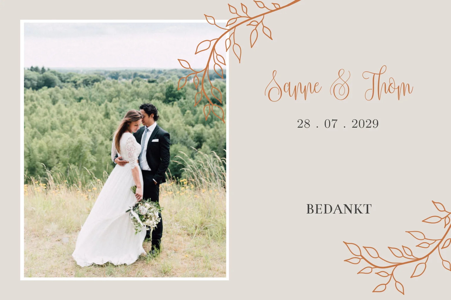 Bedankkaart met foto en takjes