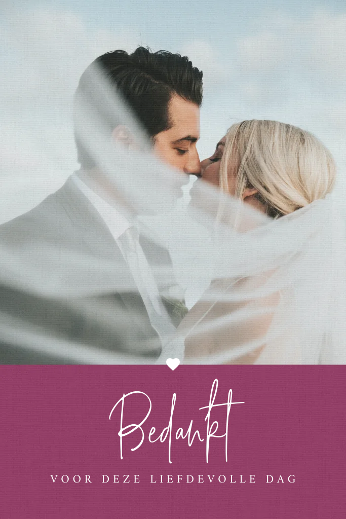 Stijlvolle bedankkaart in zacht pastel en fuchsia kleur, met ruimte voor jullie mooiste foto op de voorkant. De tekst op de berry achtergrond staat in luxe goudfolie, voor een extra mooi accent, maak de kaart persoonlijk in de online editor.
